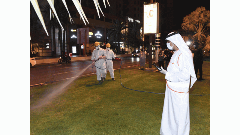أكد المهندس داود الهاجري مدير عام بلدية دبي، اهتمام قيادتنا الرشيدة بصحة الإنسان في المقام الأول، واتخاذ جميع التدابير اللازمة لحماية المجتمع، وضمان صحته، بتوفير أعلى مستويات الحماية لجميع أفراد المجتمع، من خلال تطبيق جميع الإجراءات الاحترازية للوقاية من الفيروس. وقال إن البلدية استخدمت فرق العمل المتخصصة في أعمال تعقيم وتطهير مرافق دبي العامة، وجميع الشوارع لضمان سلامة أفراد المجتمع وأمان المنشآت والمرافق العامة حرصاً على سلامة الجميع، وتم استخدام أحدث المركبات والمعدات الخاصة بالرش والتطهير، ومنها أجهزة الرش المقطورة على السيارات، والتي تعمل على تفتيت سائل التطهير إلى جزيئات صغيرة، وكذلك المرشات المحمولة على الظهر، والتي تعمل بطاقة التجزئة الهيدروليكية، بالإضافة إلى آلات الرذاذ والتبخير.