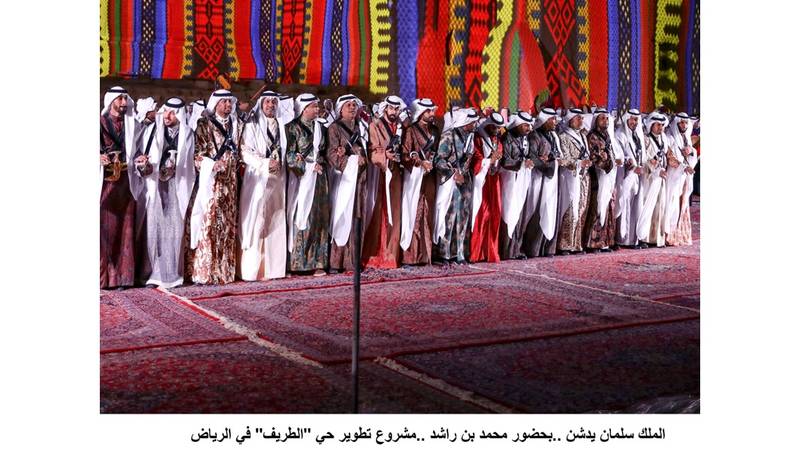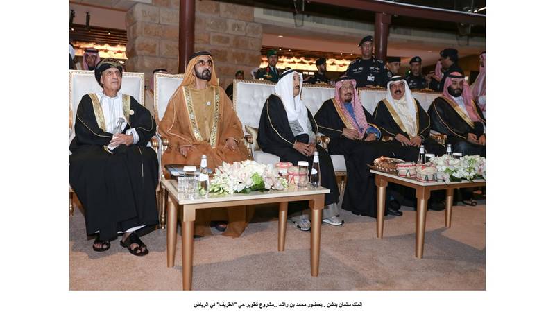 دشن خادم الحرمين الشريفين الملك سلمان بن عبدالعزيز آل سعود بحضور صاحب السمو الشيخ محمد بن راشد آل مكتوم نائب رئيس الدولة رئيس مجلس الوزراء حاكم دبي «رعاه الله» والوفد المرافق وقادة وزعماء دول مجلس التعاون لدول الخليج العربية والأمير محمد بن سلمان بن عبدالعزيز ولي العهد نائب رئيس مجلس الوزراء وزير الدفاع في المملكة العربية السعودية، أمس في الرياض مشروع تطوير حي «الطريف» المسجل في قائمة التراث العالمي لليونيسكو الذي يعتبر جزءاً من برنامج تطوير الدرعية التاريخية التي تحظى باهتمام خادم الحرمين الشريفين كونها معلماً تاريخياً تراثياً وحضارياً بارزاً.