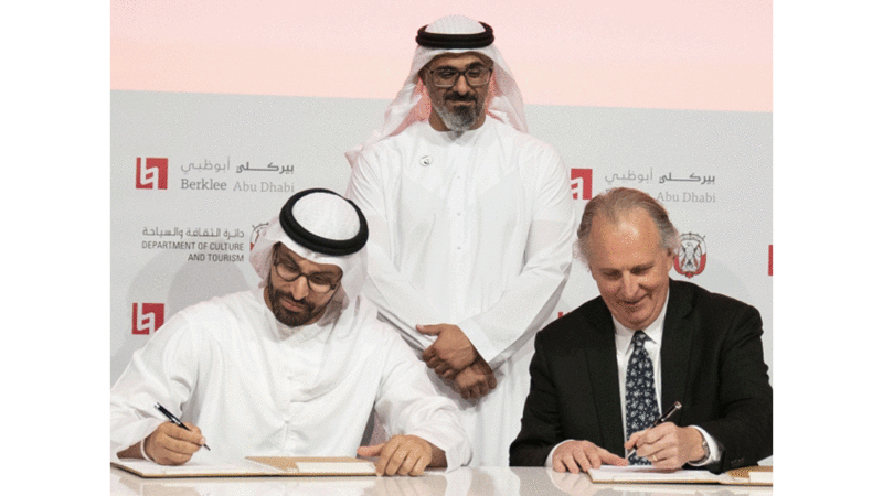 شهد سموّ الشيخ خالد بن محمد بن زايد آل نهيان، عضو المجلس التنفيذي لإمارة أبوظبي، رئيس المكتب التنفيذي، أمس، توقيع اتفاقية بين دائرة الثقافة والسياحة- أبوظبي، وكلية بيركلي للموسيقى، المرموقة عالمياً، لتأسيس مركز لها في جزيرة السعديات.