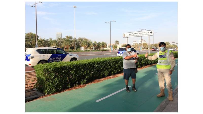 مرور أبوظبي يوزع الكمامات والقفازات على ممارسي الرياضة