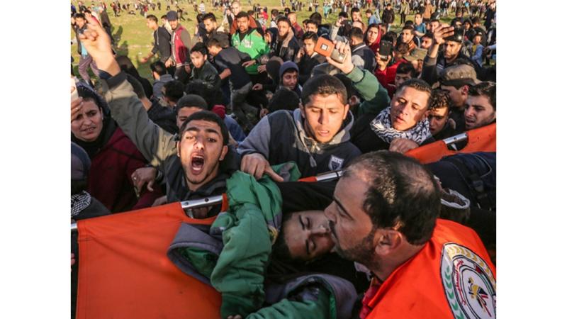 استشهد طفلان فلسطينيان، وأصيب 18 آخرون برصاص الاحتلال ««الإسرائيلي»»، أمس، خلال مسيرات العودة وكسر الحصار على الحدود الشرقية لقطاع غزة. وأفادت وزارة الصحة باستشهاد الطفل حسن إياد شلبي (14 عاما) برصاص الاحتلال في الصدر شرق خان يونس، والطفل حمزة محمد اشتيوي (17 عاما) بعد إصابته بالرصاص في الرقبة، فيما أصيب 18 مواطنا بالرصاص.