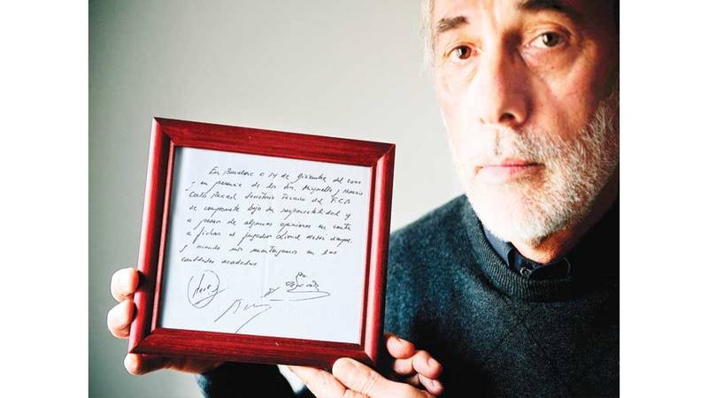 اندلع الخلاف داخل نادي برشلونة بين ريكساش الذي دافع عن التعاقد مع طفل عمره 13 عاماً فقط ومعه جميع هذه المشكلات وشريحة واسعة ترى أن في الأمر مجازفة لا تستحق خوضها، طال الأمر وحان شهر ديسمبر/كانون الأول من عام 2000 من دون قرار نهائي فاجتمع كاجيولي، الذي كان يمثل ميسي آنذاك بريكساش وقال له بكل صراحة: "كارلس لقد طال الموضوع إما أن يلعب أو سيذهب الولد إلى مكان آخر،أنا لا أتحايل عليك، لقد دخلنا في محادثات مع ريال مدريد" . ورغم وعود ريكساش إلا أن كاجيولي أراد شيئاً مكتوباً، لانعدام الثقة، فأخذ ريكساش منديل الطاولة أمامه وكتب عليه تعهداً بأن يوقع برشلونة مع ميسي بالشروط التي تم التفاهم عليها سلفاً ثم وقعها وسلمها لكاجيولي . وبعد حل جميع المشكلات، توصل الجميع في 8 يناير/كانون الأول عام 2001 إلى اتفاق نهائي يتعهد بموجبه نادي برشلونة بتأجير بيت لعائلة ميسي ودفع تكاليف المدرسة علاوة على دفع نحو 65 ألف دولار لوالده، وفي 15 فبراير/شباط 2001 هبطت طائرة في مطار كاتالان وعلى متنها ميسي وعائلته .