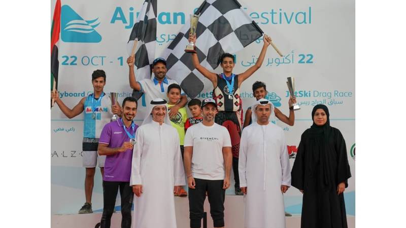 توج الشيخ عبد العزيز بن حميد النعيمي، رئيس دائرة التنمية السياحية في عجمان، أبطال ونجوم مهرجان عجمان البحري، وشارك في سباق الدراجات المائية 30 دراجاً، وحصل دراج نادي الشارقة الدولي للرياضات البحرية سلطان عيسى الحمادي، على المركز الأول في فئة جالس محترفين الفائز تلاه في المركز الثاني الدراج خالد الزرعوني، ثم المتسابق عبدالله عبدالرحمن الحمادي دراج نادي الشارقة البحري، وفي المركز الرابع حل عامر عبد الرزاق محمد، وفي المركز الخامس جاء الدراج مانع حبيب المرزوقي.