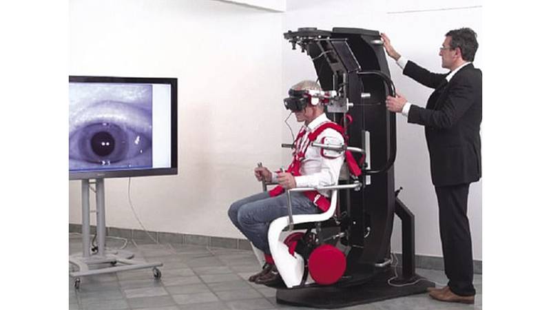 الكرسي مزود بخوذة وأجهزه استشعار وكاميرات بالأشعة تحت الحمراء عالية الدقة، تعمل على تحديد حركة البلورات أو الكريستالات المكونة من مادة «كربونات الكالسيوم» في القنوات شبه الدائرية بالأذن الداخلية، فعندما تتحرك إحدى تلك البلورات من مكانها تتسبب باضطراب في التوازن.