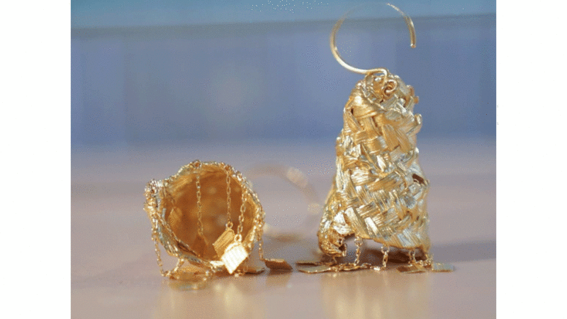 ترتكز مجموعة الأواني التي يقدمها المصممان الإسباني أدريان سلفادور كانديلا والإماراتية شيخة بن ظاهر، على الميزات الطبيعية للجلد. وتمزج هذه الأواني الجلد الطبيعي ومنسوجات التلّي لتعرض حواراً بين حرفتين وثقافتين.