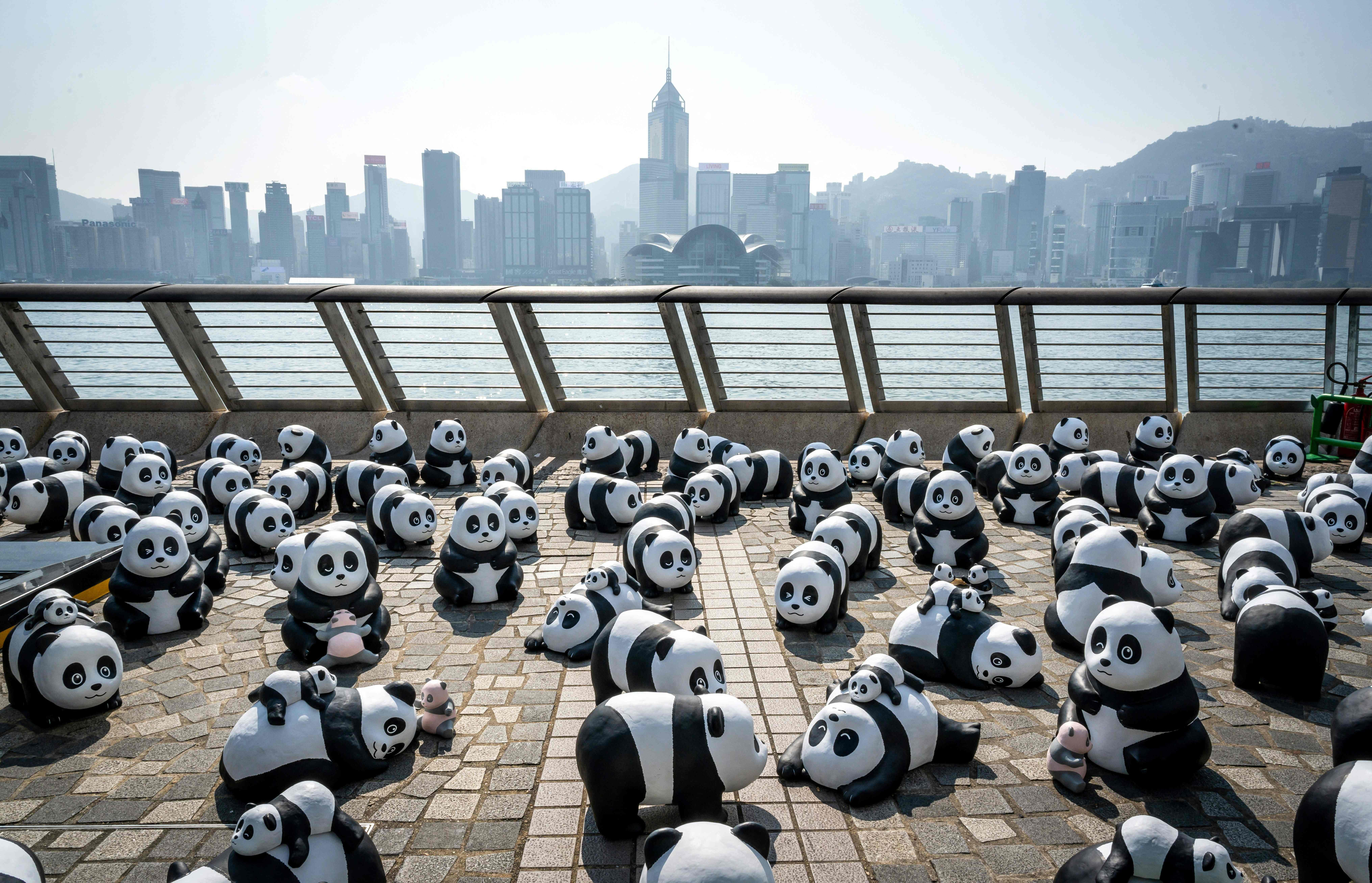 احتشد الآلاف في هونج كونح، السبت، لمشاهدة سلسلة من 2500 منحوتة للباندا في شارع النجوم الشهير. وتحت عنوان«الباندا في المدينة»، عرضت تلك المنحوتات كجزء من مهرجان«باندا جو» أكبر معرض لتكريم هذا النوع من الحيوانات في هونج كونج.