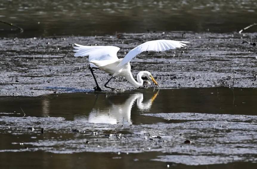 طائر مالك الحزين يصطاد في الأراضي الرطبة في بورلينجيم بكاليفورنيا (ذا غارديان)