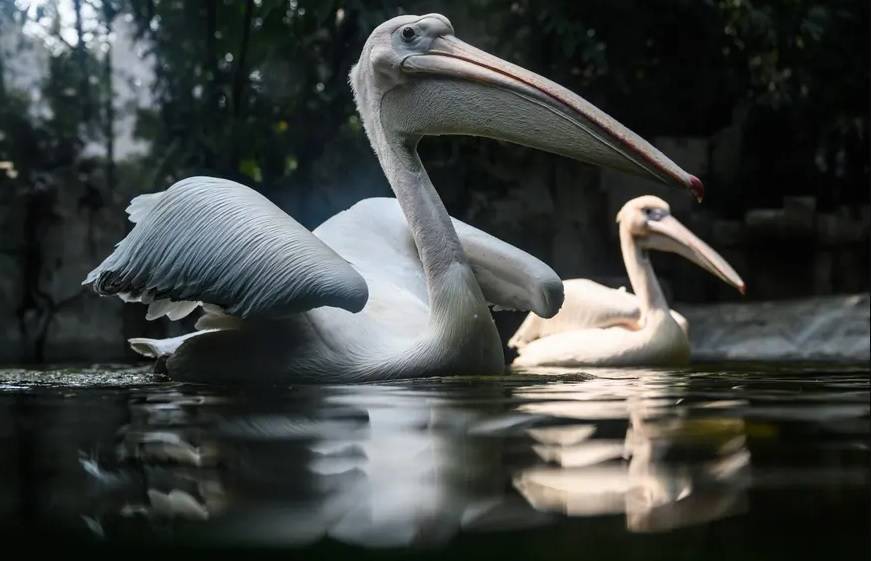 بجع يسبح في بحيرة في قوانغتشو بالصين