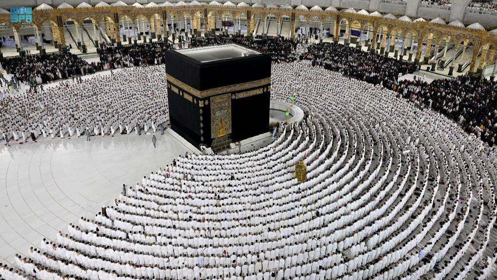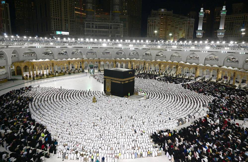 General view of muslims performing evening prayers at the Grand Mosque during the holy month of Ramadan, in the holy city of Mecca, Saudi Arabia, April 11, 2023. Saudi Press Agency/Handout via REUTERS ATTENTION EDITORS - THIS PICTURE WAS PROVIDED BY A THIRD PARTY