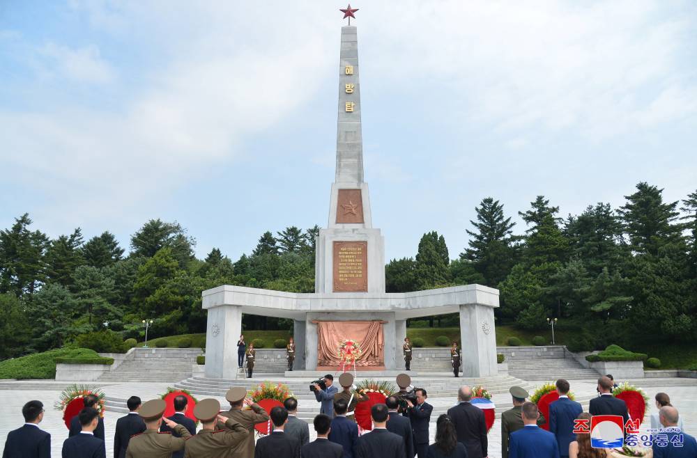وأقيمت المراسم التذكارية في ساحة قصر الشمس «كومسوسان» في بيونغيانغ، وهو الضريح الذي يخلد ذكرى زعماء الشمال السابقين، حيث حرض الآلاف على وضع سلالًا وباقات زهور على قبور قادة البلاد السابقين. وعلى غرار مدن عدة، شهدت منطقة قوس النصر في العاصمة مراسم رفع العلم وعدداً من العروض الفنية التي لقيت اقبالاً واسعاً من الجمهور الذي رغب في إحياء ذكرى التحرر من الاستعماري الياباني.