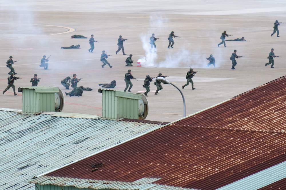 نظمت تايوان الأربعاء، أول مناورة عسكرية لها في مطار تايوان الدولي، وعطّلت الرحلات الجوية لفترة وجيزة من أجل محاكاة لردّ على هجوم صيني محتمل على المنشأة.