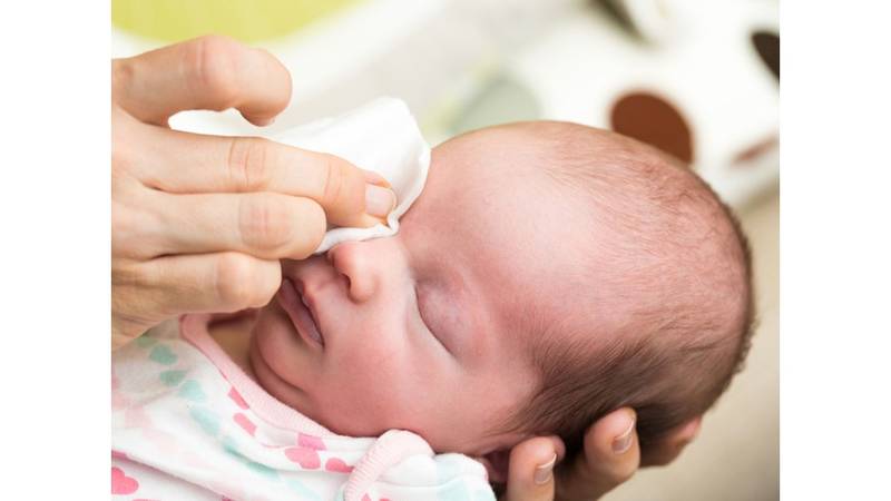 يصاب بعض الأطفال وخاصة الذين هم من حديثي الولادة بالتهاب العيون أو التهاب الملتحمة خلال الـ 30 يوماً الأولى بعد الولادة، وتشير هذه الحالة أيضاً إلى خروج إفرازات قيحية من عين الطفل الرضيع، وخروج هذه الإفرازات يحتاج إلى رأي الطبيب المتابع؛ لأن الطفل في هذه المرحلة لا يوجد لديه أي دموع في الأشهر الأولى من العمر، ويوجد عدد من الأسباب والعوامل التي تؤدي إلى إصابة الطفل بهذه الحالة المرضية، ومنها تعرض عين الطفل للتلوث أثناء عملية الولادة؛ وذلك عند مروره عبر قناة الولادة للأم المصابة بالالتهابات الفيروسية أو البكتيرية أو من خلال اليدين؛ حيث تتواجد جراثيم الكلاميديا التراخومية بكثرة في هذه الأماكن، وكذلك جراثيم النيسيريا البنية، ومن المسببات أيضاً تعرض الطفل إلى فيروس الهربس البسيط، وكذلك جرثومة العصيات الزرق التي تحدث بشكل طبيعي في الأسبوع الأول من الولادة، ومهاجمة البكتيريا الكروية العنقودية الذهبية أو ستافيلوكوكس، كما يحدث الالتهاب؛ بسبب التخريش الكيماوي، ويصاب الطفل بالتهاب الملتحمة الكيميائي الناتج عن عملية رض الولادة أو المضادات الحيوية الوقائية التي تتناولها الأم عند الولادة للوقاية من الخمج، ويمكن أن ينتج الالتهاب عن نوع من التحسس، وكذلك في حالة دخول جسم غريب في العين.