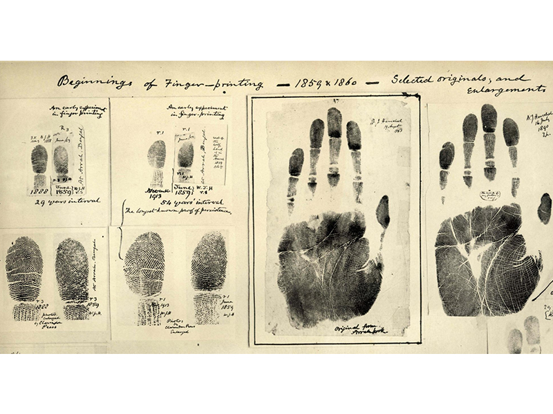 حيث كان السير وليام جيمس هيرشيل Sir William James Herschel، يطلب من السكان المحليين تذييل العقود التجارية ببصماتهم، وكان يفعل ذلك على حدس بأنها وسيلة جيدة لتحديد شخص ما.