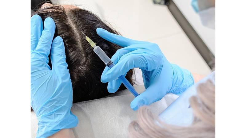 تعني طريقة «الميزوثيرابي» حقن الصفيحات الدموية، الغنية بعوامل النمو، في المناطق المستهدفة بالعلاج في فروة الرأس؛ لتنشيطها وتسريع إعادة توليد الخلايا، هذا من شأنه أن ينشط نمو الشعر، ويجعله يبدو أسمك وأكثر نعومة، وهي عبارة عن حقن بكميات متناهية الصغر من الأدوية، الفيتامينات، والمعادن في فروة الرأس؛ لمساعدتها على التجدد وإصلاح نفسها، البيوتين، حمض الفوليك، فيتامين B الزنك، عناصر تنشط الدورة الدموية وتغذي جريبات الشعر؛ لذا فالشعرة التي ستنمو من هذه الجريبات ستكون أكثر سمكاً، وأقوى، وأكثر صحة، ومن ثم يتراجع تساقط الشعر وتكسره؛ ولذلك فإن حقن الميزوثيرابي بالتناوب مع جلسات الـPRP بشكل شهري يساعد في نمو الشعر والتخلص من تساقطه.