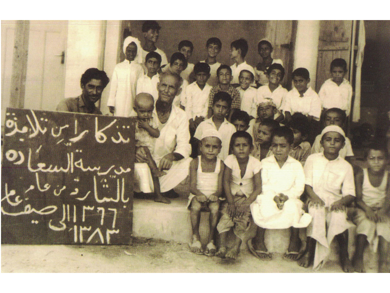 عندما تأسس التعليم النظامي في الشارقة عام 1953، تولت الكويت إنشاء المدارس الحكومية في الشارقة وبقية الإمارات. وبدأت مدارس الكتاتيب تتقلص تدريجياً، ولكن كانت هناك مدرسة أنشئت في الشارقة بجهود ذاتية من أحد مواطني عجمان، وهو نعمة الله شكر الله الذي أنشأ مدرسة السعادة عام 1947. سافر نعمة الله إلى الكويت في شبابه وتعلم في مدارسها، وبعد ذلك انتقل إلى مدينة بومبي بالهند حيث درس اللغة الإنجليزية، وأكمل دراسته الجامعية ثم عمل لفترة من الوقت في مكتبة هناك تابعة للشيخ محمد علي زينل مؤسس مدارس الفلاح. عاد نعمة الله إلى عجمان وتنقل بين مدرستي الفتح والحصن، وفي أوائل الأربعينات انتقل إلى الشارقة، حيث طلب منه محمد بن علي المحمود، مدير مدرسة الإصلاح إعطاء دروس يومية في اللغة الإنجليزية لطلبة المدرسة. وفي عام 1947 افتتح نعمة الله مدرسة خاصة في بيته، وأطلق عليها اسم «مدرسة السعادة» اختصت بتعليم القرآن الكريم والحساب والإنجليزية، واستمرت في أداء وظيفتها حتى الستينات، وكانت ابنته تساعده في تعليم القرآن الكريم للبنات. والصورة المرفقة للمدرس نعمة الله شكر الله (الذي يحمل طفلاً) مع طلبة مدرسة السعادة بالشارقة في صورة تذكارية التقطت صيف عام 1963. وتبين اللوحة الموجودة بالصورة تاريخ بدء عمل المدرسة وهو عام 1366ه الذي يوافق عام 1947م تقريباً، وتذكر اللوحة أيضاً أن المدرسة استمرت في العمل حتى عام 1383ه الموافق لعام 1963م. ويبدو أن هذه الصورة التقطت كذكرى كما هو مبين بالصورة وربما التحق طلاب المدرسة التي أغلقت، بالمدرسة القاسمية التي كانت المدرسة الابتدائية الوحيدة بالشارقة في تلك الفترة وتشرف عليها الحكومة الكويتية.