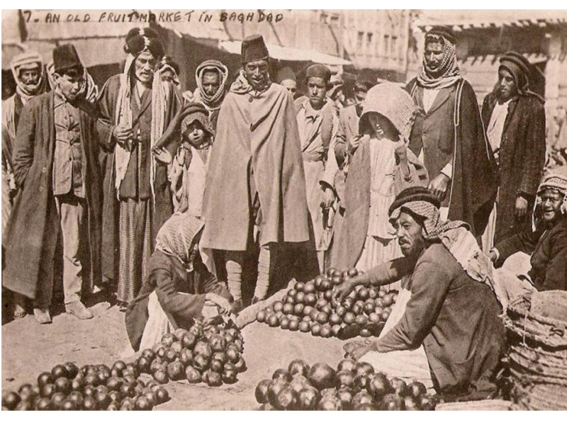 في عام 1916 زار الرحالة الفرنسي إميل أوبليه مدينة بغداد، وتحدث عن زي النساء والرجال في بغداد. يقول «سكان بغداد يرتدون بصفة عامة الزي العربي، إذ يلبس الرجال نوعاً من الملابس يسمى (زبون) وفوقه رداء يسمى (عباءة) في حين توضع على الرأس قبعة مع أو بدون عمامة، أو منديل مثبت بحبل من وبر الجمل يطلق عليه «عقال» وتلبس النساء في بيوتهن "أرواباً" بسيطة جداً، والنساء لا يخرجن إلى الشارع أبداً من دون أن يلبسن رداء يسمى «إزار»، ويضعن على وجوههن نقاباً يدعى «بوشيه»، وهي منسوجة من شعر الحصان، أو من نسيج ناعم، ويستخدمن كذلك نوعاً آخر يسمى «يازما» أو «منديل» من أجل تغطية الوجه، واللواتي لا يلبسن إزاراً يرتدين رداءين ويغطين وجوههن بنقاب خفيف أيضاً. وتستخدم النساء هنا الكحل لصبغ أطراف الجفون والحواجب، كما يستخدمن الحناء لصبغ الشعر وأصابع اليد والأقدام، أما مصوغاتهن فهي ذات أثمان مرتفعة.