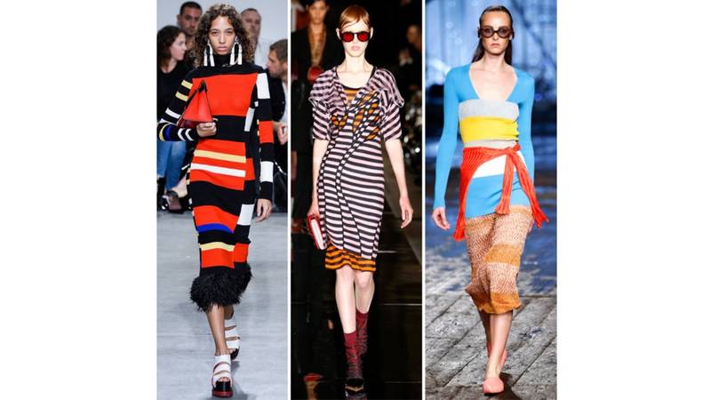 ولا تخلو موضة الربيع والصيف من الألوان المبهجة والتصميمات الرقيقة التي تناسب جميع النساء في مختلف المناسبات اليومية، وكانت السترايبس الملونة بأنماطها الأفقية والعرضية سيدة الموقف لتصميمات دور أزياء «ميسوني» و«جيفنشي» ليتخللها مجموعة من ألوان قوس قزح المميزة في تناسق بديع يصلح لأوقات التنزه أثناء الليل.