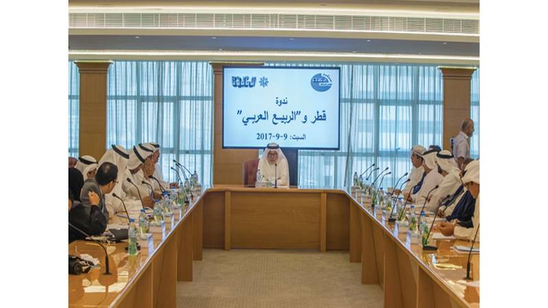 أجمعت ندوة «قطر والربيع العربي»، التي عقدها مركز الخليج للدراسات في دار «الخليج» للصحافة والطباعة والنشر، أمس السبت، على أن قطر ركبت موجة «الربيع العربي»، وتبنّت مشروعاً هداماً يقضي بتفتيت المنطقة من الداخل.