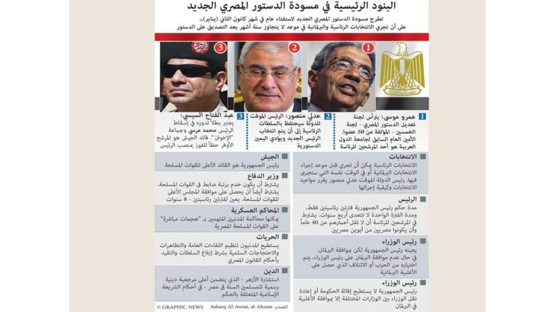 عبرت العديد من القوى السياسية المصرية عن ترحيبها بإنجاز مسودة الدستور، في تعبير عن سلامة مسار خريطة الطريق، وأكدوا أن مشروع الدستور الجديد يعد من أفضل دساتير مصر . وقال القيادي في جبهة الإنقاذ، وحيد عبد المجيد إن مشروع الدستور في مجمله مقبول وهو أفضل من الدساتير السابقة خاصة فيما يتعلق بالحقوق والحريات ولكن هذا لا يمنع من تضمنه بعض العيوب .