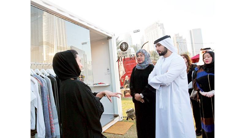 قام سمو الشيخ ماجد بن محمد بن راشد آل مكتوم، رئيس هيئة دبي للثقافة والفنون أمس السبت بزيارة فعالية "حاويات الأزياء" في برج بارك بالقرب من برج خليفة، وهي من الفعاليات المبتكرة التي ينظمها مهرجان دبي للتسوق في دورته التاسعة عشرة بالتعاون مع إعمار، وتعد الأولى من نوعها في دبي، وتحمل مفهوما مبتكرا يركز على أهمية الحفاظ على البيئة وإعادة التدوير بتقديم سوق في الهواء الطلق وبطريقة جديدة .