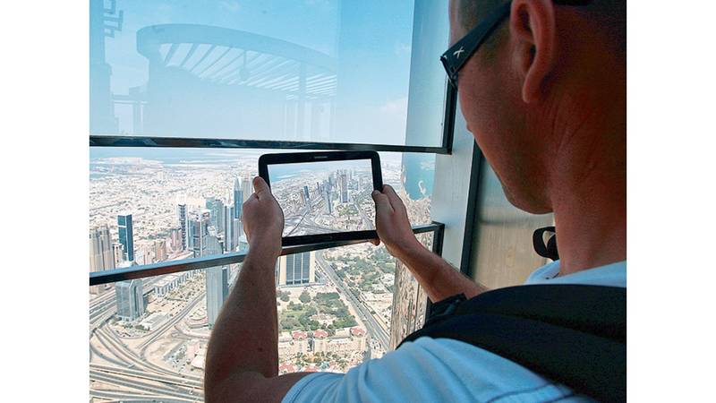 لا يمكن لك أن تهمل الكاميرا في هذا المكان فكل شيء حولك جاذب، من مجسمات تعريفية، إلى منصات تفاعلية، وعبارات مكتوبة على الجدران تتسلل إليك بكل حب، ينتقل الزوار بعد ذلك إلى منطقة تسمى "السماء حول برج خليفة"، وتتوقف الجولة قليلاً في هذه النقطة وينشغل الجميع بالتقاط الصور التذكارية مع السماء، حيث تعتبر المكان الوحيد ليرى الزوار ارتفاع البرج الشاهق، والتعمق في جماليات الزخارف والتصميمات الراقية للجدران والشكل المعماري الفريد من الداخل والخارج . من جانبها عبرت الزائرة السعودية مها عبد الله، عن جماليات المكان ووحي التراث والأصالة الذي يفوح في كل مكان، وسعادتها هي وعائلتها في هذه الأوقات الاستثنائية .