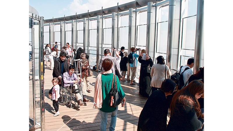 كانت الزائرة الفرنسية نيكول أوكست، تتأمل الأفق مع زوجها من النوافذ، وأكثر ما أعجبها حسب قولها: كنت أسمع عن دبي وعن برج خليفة كثيراً من ابني الذي يعمل في شركة فرنسية في الشارقة، وعندما رأيت بأم عيني هذا البرج توضحت لي أشياء جديدة تعرفت إليها عن تاريخ المدينة وأسلوب الحياة في الإمارات من خلال الشروحات التعبيرية وهذا أمر جميل كي نتعرف إلى ثقافات مهمة وغنية .