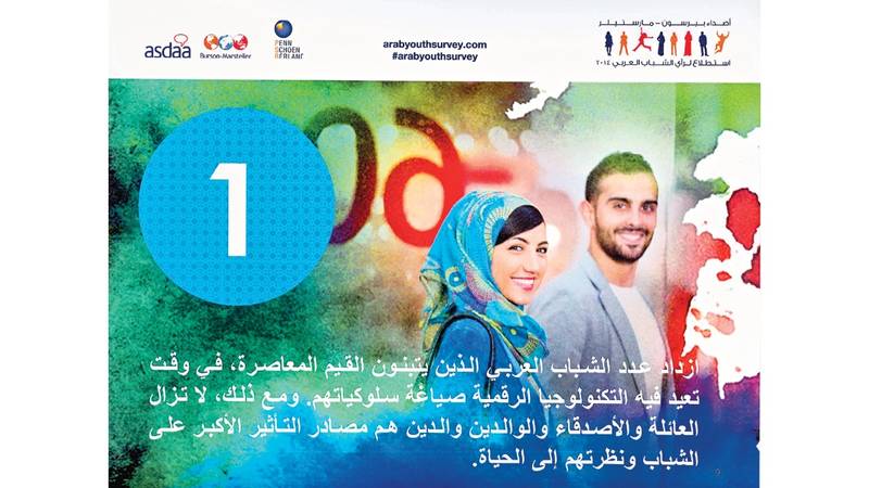 ازداد عدد الشباب العربي الذين يتبنون القيم المعاصرة في وقت تعيد فيه التكنولوجيا الرقمية صياغة سلوكاتهم . ومع ذلك، لا تزال العائلة والأصدقاء والوالدان والدين هم مصادر التأثير الأكبر في الشباب ونظرتهم إلى الحياة .