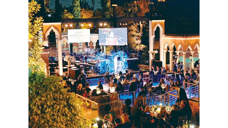 وأقيم الحفل المبهر في قصر "بيفرلي هيلز الأسطوري"، الذي شهد تصوير العديد من أفلام هوليوود الشهيرة، ويبعد ثلاثة أحياء فقط عن شارع صن سيت بوليفارد، واستمتع الحاضرون بعرض للصوت والضوء ثلاثي الأبعاد عن الاتحاد للطيران والعاصمة الإماراتية أبوظبي، والذي تبعه بعد ذلك عرض موسيقي حي للفنان والمغني الأمريكي الشهير "هاري كونيك جونيور" .