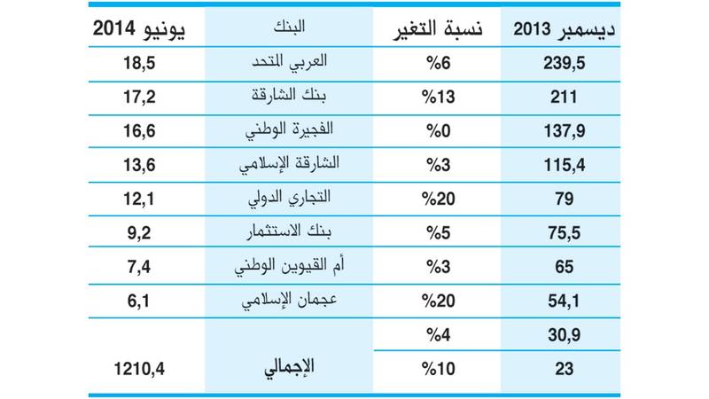 سجل الإمارات دبي الوطني متضمناً ودائع الإمارات الإسلامي أكبر حجم ودائع للعملاء بقيمة 252،8 مليار درهم مقابل 239،5 مليار درهم بنمو 6%، وأبوظبي الوطني 237،4 مليار درهم مقابل 211 مليار درهم، فيما ارتفعت ودائع دبي الإسلامي بنسبة 20% إلى 94،7 مليار درهم مقابل 79 مليار درهم، واستقرت ودائع العملاء في بنك الخليج الأول عند 137 مليار درهم، كما استقرت ودائع بنك أم القيوين الوطني عند 7.4 مليار درهم .