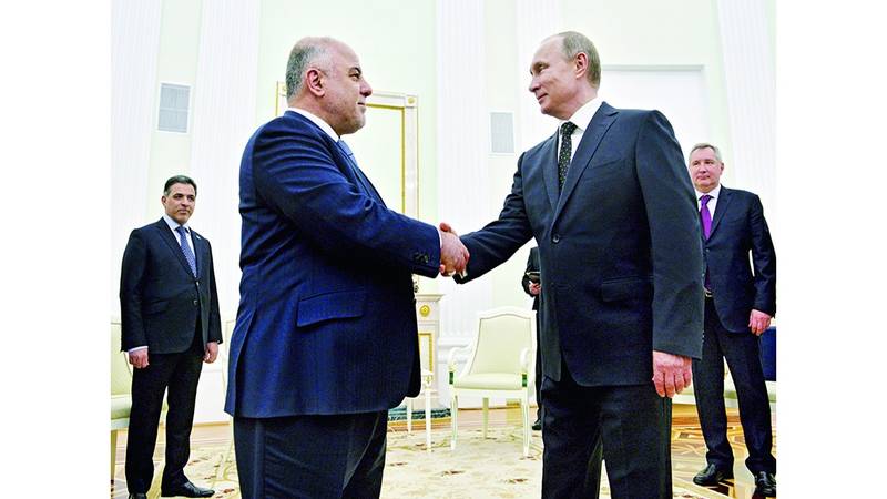 بحث رئيس الوزراء العراقي حيدر العبادي مع عدد من المسؤولين الروس في موسكو، أمس، التعاون العسكري والعلاقات الاقتصادية، ودعا روسيا إلى لعب دور أكبر في محاربة تنظيم «داعش» خلال لقاء مع نظيره الروسي ديمتري ميدفيديف، بينما أبدت روسيا استعدادها لتزويد العراق بالسلاح، في حين أكد الرئيس الروسي فلاديمير بوتين خلال محادثاته في الكرملين مع العبادي في الكرملين أن موسكو وبغداد ستعززان التعاون العسكري فيما بينهما.