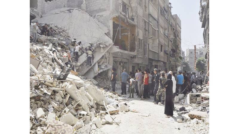 وقال مأمون عبد الكريم مدير عام الآثار في سوريا امس إن مدينة تدمر الأثرية بخير ولم تلحق بها أضرار حتى الآن. لكنه أضاف أنه مازال يخشى أن يفجر التنظيم المتشدد أطلالا في تدمر بما في ذلك المدافن البرجية ومعبد بعل. ومن جهته، أوضح المرصد السوري لحقوق الإنسان ان 6 مدنيين لقوا مصرعهم امس خلال قصف متبادل بين قوات النظام ومسلحي المعارضة في حلب شمالي البلاد. واوضح المرصد في بيان ان عدة قذائف اطلقتها الكتائب المعارضة سقطت على مناطق خاضعة لسيطرة قوات النظام ما أدى لمقتل ثلاثة مدنيين على الاقل وإصابة أكثر من 21 آخرين بجراح. وذكر البيان ان طيران النظام المروحي ألقى برميلا متفجرا على قرية برج عزواي بريف حلب الجنوبي أدى الى مقتل ثلاثة مدنيين من عائلة واحدة من بينهم طفل وإصابة آخرين بجراح.