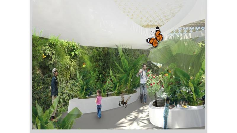 وأعقب بالقول إنه من المعالم الهامة والفريدة ، «بيت الفراشات» والذي يشكل عنصر الجذب الرئيسي في الجزيرة، ويتميّز بسطحه المزدان بالزخارف وجدرانه الخضراء المغطاة بالنباتات المتسلّقة والأضواء، ويأتي الشكل الخارجي الحيوي المعبّر ملفتاً للأنظار ورمزاً لمدى الابتكار في التصميم. ويستضيف بيت الفراشات نحو 500 فراشة تم جلبها من دول شرق آسيا، ومن أبرزها فراشة «داناوس كرايسيبوس» المعروفة أيضاً باسم «الملك الإفريقي»، وفراشة «دولاشايلا بيسالتايد» الشبيهة بورق الخريف، و«باشلايوبدا اريستولوكيا» المنتشرة في جنوب شرق آسيا، وتتميّز ببهاء ألوانها وتسمى ب«فراشة الورود».