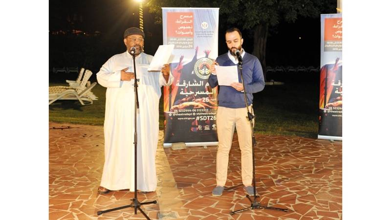 ومن باب استعادة البعد الأدبي للنص، والدعوة للاهتمام به وتكريس تقليد قراءته، نظمت الأيام أمس الأول في فندق الهوليدي انترناشيونال، أمسية بعنوان «مسرح القراءة: نصوص وأصوات»، شارك فيها المبدعون: سلمى مختاري من المغرب، وإبراهيم سالم من الإمارات، ورائد دالاتي من سورية، وقدم الأمسية عصام أبو القاسم.
