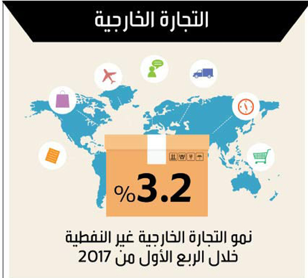 وتشير الأرقام الأولية للربع الأول من 2017 إلى أن حجم التجارة الخارجية غير النفطية وصل 401 مليار درهم، محققاً نمواً بنسبة تجاوزت 3.2% مقارنة بالفترة نفسها من عام 2016، الأمر الذي يعطي مؤشراً بأن إجمالي التجارة الخارجية غير النفطية للدولة يتوقع أن يبلغ مع نهاية العام الجاري نحو 1.7 تريليون درهم.