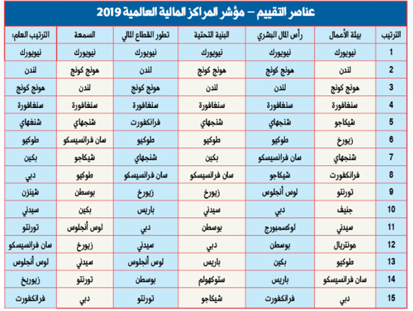 يُذكر أن تقرير مؤشر المراكز المالية العالمية، يصدر بشكل نصف سنوي من قبل مؤسسة «زد ين» في لندن، ومعهد التنمية الصيني، ويوفر تقييماً للقدرة التنافسية، وتصنيفاً للمراكز المالية العالمية الرئيسية. وشهدت النسخة ال26 من تصنيف مؤشر المراكز المالية العالمية تقييم أكثر من 114 مركزاً مالياً بالاستناد إلى أكثر من 133 عاملاً.
