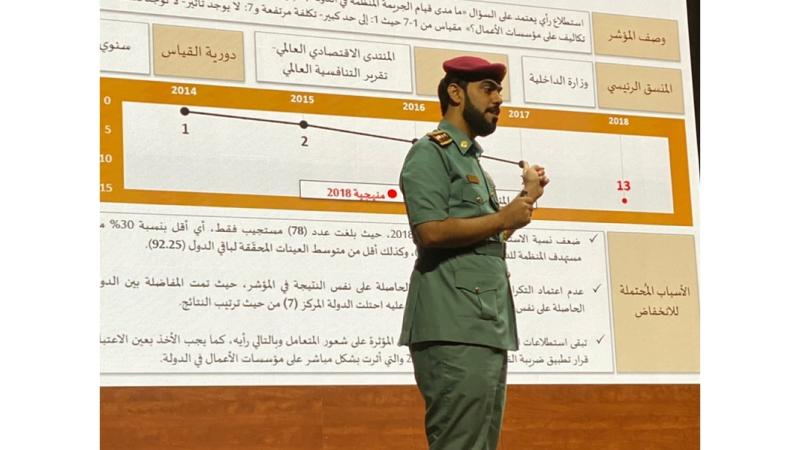 حاضر في الورشة النقيب الدكتور سعيد الصغيري متناولاً أهم أهداف رؤية الإمارات 2021، وأبرز مؤشرات الأجندة الوطنية لاستشراف مستقبل القطاع الخاص، وتحدث عن مبادرات القيادة العامة لشرطة الفجيرة لتحقيق السلامة الأمنية في منشآت القطاع الخاص، واستعرض المراتب التي حققتها الإمارات على مستوى العالم فيما يتعلق بتحقيق المؤشرات الأمنية في تقارير التنافسية العالمية.