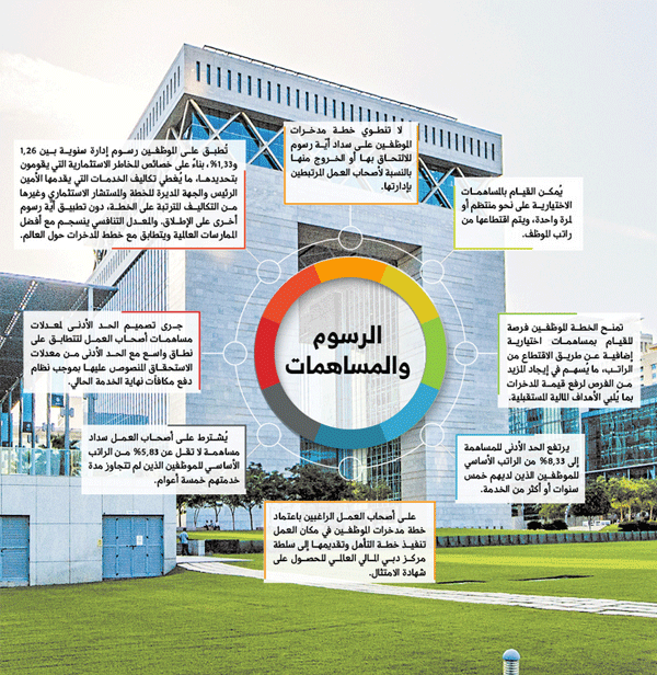 ** يعتزم مركز دبي المالي العالمي دعم قدرة أكثر من 2300 من الشركات العاملة ضمنه على استقطاب واستبقاء أبرز الكوادر المتخصصة وأكثرها كفاءة من المنطقة والعالم، وذلك من خلال تزويد الموظفين بإمكانية الحصول على عائدات من مدخراتهم من خلال خطة منظمة وموثوقة.
