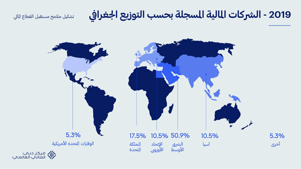 وشهد المركز زيادة في عدد شركات التكنولوجيا المالية بواقع أربعة أضعاف، لتبلغ 129 شركة خلال عام 2019. وتضمنت قائمة الشركات الجديدة في المركز شركة وثاق المحدودة و«ليكفيدي سيكيوريتيز» المحدودة، بالإضافة إلى «فينيرجو».