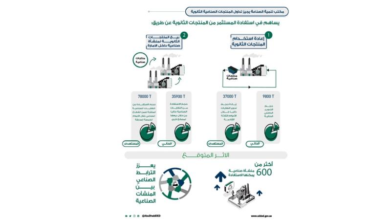 أجازت دائرة التنمية الاقتصادية ـ أبوظبي ممثلة بمكتب تنمية الصناعة التابع لها، تداول المنشآت الصناعية المرخصة على مستوى إمارة أبوظبي للمواد الصناعية الثانوية الناتجة عن عمليات التصنيع، وذلك بإعادة إدخالها ضمن عملياتها الإنتاجية، من خلال إضافة خطوط إنتاج لهذا الغرض أو بيعها لمنشآت صناعية في الإمارة، للاستفادة منها كمواد أولية.