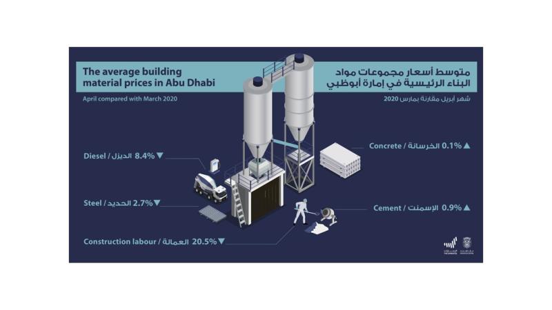وأظهرت المؤشرات التي تضمنها التقرير ارتفاع متوسط سعر مجموعة «الأسمنت» بنسبة 0.9%، ومجموعة «الخرسانة» بنسبة 0.1% خلال شهر أبريل 2020، مقارنة بشهر مارس 2020، فيما انخفض خلال أبريل 2020 متوسط أسعار مجموعة «العمالة» بنسبة 20.5%، ومجموعة «الديزل» بنسبة 8.4%، ومجموعة الحديد بنسبة 2.7%، مقارنة بمارس 2020.