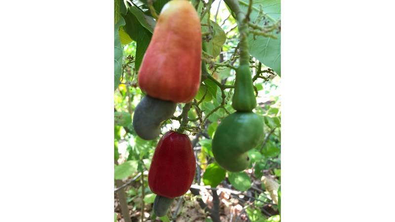 ويضيف الحفيتي: «أشجار الكاجو دائمة الخضرة، وأزهارها تتجمع في عناقيد، وتكون صغيرة، ولونها أخضر في البداية، ثم تتحول للون الأحمر تدريجياً، كما أن ثمار الكاجو تشبه في شكلها حبات الكمثرى، وهي صالحة للأكل».