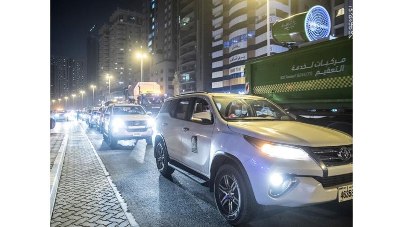 وانطلقت المسيرة من مسجد النور بالشارقة، وحطت بمحطتها الأخيرة في مقر مسرح المجاز، بمشاركة أكثر من 200 آلية، ومركبة، شكراً وتقديراً لفرق العمل، التي ساهمت في نجاح البرنامج الوطني للتعقيم.