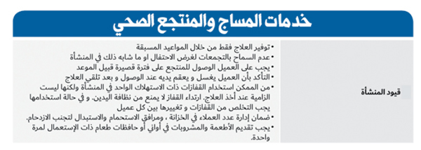 كذلك، نص البرتوكول المحدّث على إعادة افتتاح خدمات المساج وخدمات المنتجع الصحي المستقل وفي الفنادق ومراكز التسوق وقائمة للمنتجعات الصحية والصالونات النسائية وصالونات الحلاقة خارج مراكز التسوق.