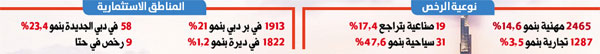 وتوزعت الرخص الجديدة على مختلف المناطق الاستثمارية في دبي، وجاءت منطقة «بر دبي» في الصدارة بواقع 1913 رخصة بنمو 21%، تلتها «ديرة» ثانياً ب1822رخصة بنمو 1.2%، في حين احتلت «دبي الجديدة» المركز الثالث ب58 رخصة بنمو 23.4%، ورابعاً حتا ب9 رخص.