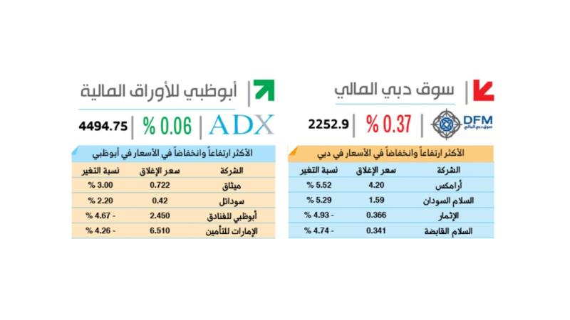 وشهد سوق أبوظبي سيولة بنحو 341 مليوناً، بتداول 84 مليون سهم، بينما شهد سوق دبي بنحو 264.5 مليون درهم، بتداول 453.4 مليون سهم.