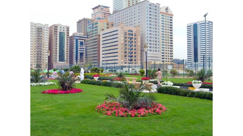 الشارقة.. مسطحات خضراء وأشجار وزهور تشكل لوحات إبداعية