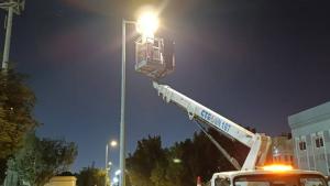 وتحويل الإنارة من الطاقة الشمسية إلى كهربائية في ٣٦ عموداً بمنطقة الوشاح ، حيث تمت إنارة الحي والحديقة وفي منطقة مليحه تم تركيب ٢٣عموداً لإنارة حي مليحه الغربية ، كما تم تشغيل 39 عموداً في منطقة المدام/ فلي لإنارة حي بن حسن ، وأشار إلى أن مشروعات الإنارة تم تنفيذها وفق أفضل المواصفات في وقت قياسي وربطها بالشبكة وتمديد كايبلات بطول 35700 متر وتركيب أعمدة مختلفة الأطوال تتراوح بين 6 أمتار و 14 متراً حسب المناطق والموقع وتركيب كشافات ومصابيح موفرة للطاقة.