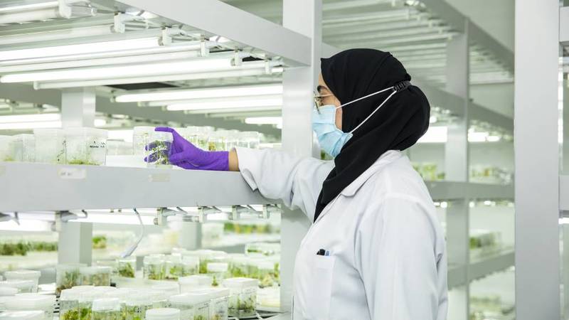 أكّدت جامعة الإمارات، الجامعة الوطنية الأم في الدولة، ريادتها في تحقيق الأمن الغذائي للإمارات عبر البحث العلمي والاقتصاد المعرفي اللذين يُشكّلان أساس بناء التنمية المستدامة، لمنع حدوث نقص في الغذاء مستقبلاً، فضلاً عن مُعالجة التحديات مثل الجفاف والتصحر، وغيرها من المشكلات التي تعوق توافر الأمن الغذائي، في خطوة تهدف إلى تعزيزه في الدولة، بالشراكات مع المؤسسات والهيئات العلمية المحلية والعالمية. وقال زكي أنور نسيبة، المستشار الثقافي لصاحب السموّ رئيس الدولة، الرئيس الأعلى للجامعة «أظهر انتشار جائحة «كورونا»، أهمية الأمن الغذائي وضرورة تحقيق الاكتفاء الذاتي للدول. لذا يركّز الباحثون في «مركز خليفة للتقانات الحيوية والهندسة الوراثية» بجامعة الامارات، على دراسة النباتات الصحراوية في بيئة الإمارات، لتوليد المعرفة العلمية ومن ثم مواجهة التحديات العالمية في قضية الأمن الغذائي، وممارسة الزراعة المستدامة عبر بحوث الجينوم والهندسة الوراثية، والابتكار في التقانات الحيوية، فضلاً عن الاستفادة من الأنظمة الجينية للنباتات كمسار لتطوير الزراعة في دولة الإمارات». وأضاف «بفضل دعم سموّ الشيخ منصور بن زايد آل نهيان، نائب رئيس مجلس الوزراء وزير شؤون الرئاسة، للمركز باتت الأنظار تتجه إليه كونه البارز والمُميّز في البحث العلمي، والمُساهم الأول في تحقيق الأمن الغذائي للدولة النابع من احتياجات المجتمع، حيث يحرص على مواكبة الاستراتيجية الوطنية للأمن الغذائي 2051، وتحقيق تطلّعات القيادة الرشيدة بأن تكون دولة الإمارات الأفضل عالمياً في مؤشر الأمن الغذائي العالمي بحلول عام 2051». وقال «يهدف المركز إلى تحقيق الريادة في الهندسة الوراثية والتقانات الحيوية للنباتات، بالاكتشاف والابتكار العلمي لإنتاج وتعديل النبات بسمات زراعية واقتصادية. حيث تعتمد مهمته على دراسة الجينوم، لتطوير إنتاج المحاصيل وتحقيق الأمن الغذائي. وذلك بتوليد المعرفة العلمية، عبر اكتشاف المبادئ الأساسية لكيفية استجابة النباتات للضغوط البيئية اللاحيوية. ومن ثمَّ تحويل المعرفة إلى المحاصيل والمنتجات المفيدة. وﺗطوﯾر نباتات (عن طريق التعديل والتحرير الجيني) بصفات ذات قيمة اقتصادية عالية، مثل القدرة على تحمل الضغوط البيئية اللاحيوية أو غيرها». يذكر أن المركز يضمّ مختبراً لزراعة الأنسجة، يتكوّن من 5 كبائن أفقية، توفّر بيئة مُعقّمة موثوقة لزراعة الأنسجة النباتية، وبيوت خضراء ذات تقنية عالية، وغرف نموٍ، وعدد من الغرف البيئية المُتحكم فيها، ما يسمح للمستخدمين تخصيص ومراقبة العوامل المُختلفة المؤثّرة على التجارب العلمية للتوصّل إلى البيئة المطلوبة. كما تُشكّل مختبرات الأحياء الجزيئية في المركز منبعاً للابتكار، حيث تحتوي على أجهزة جزيئية حديثة تسمح للعلماء في الجامعة بتجارب علمية حديثة.