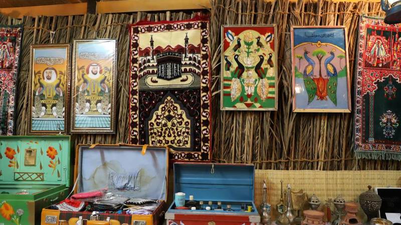 من أجواء المقتنيات أيضاً يلمح الزائر بعض الأبواب الخشبية العتيقة والنوافذ، والسجاجيد التي تزين الجدران، مع لوحات أخرى تميل إلى استدعاء فن الكولاج بحس شعبي لا يخلو من استدعاء الرموز والأساطير. فيما تنتصب ماكينة خياطة قديمة في إحدى الزوايا، ولا تزال محتفظة بصندوقها الخشبي، وتكاد رائحة القماش الذي مر من تحت إبرتها أن تعم المكان، وتحيل إلى سنوات كفاح الأمهات وتعبهن.