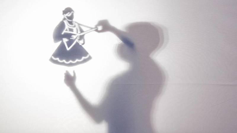 بالقرب من «بيت التراث العربي» بساحة التراث في «قلب الشارقة»، عُلقت ستارة بيضاء شفافة، تتحرك على سطحها مجموعة من الأشكال، بعضها جاءت على شكل طيور أو حيوانات، وأجساد وأشكال أخرى تتحرك بكل رشاقة باستخدام فنون مسرح الظل، لتروي على مسامع زوّار الدورة الـ 18 من أيام الشارقة التراثية، التي تستمر حتى 10 إبريل المقبل، قصصاً شيّقة، باستخدام الأصابع والدمى.
